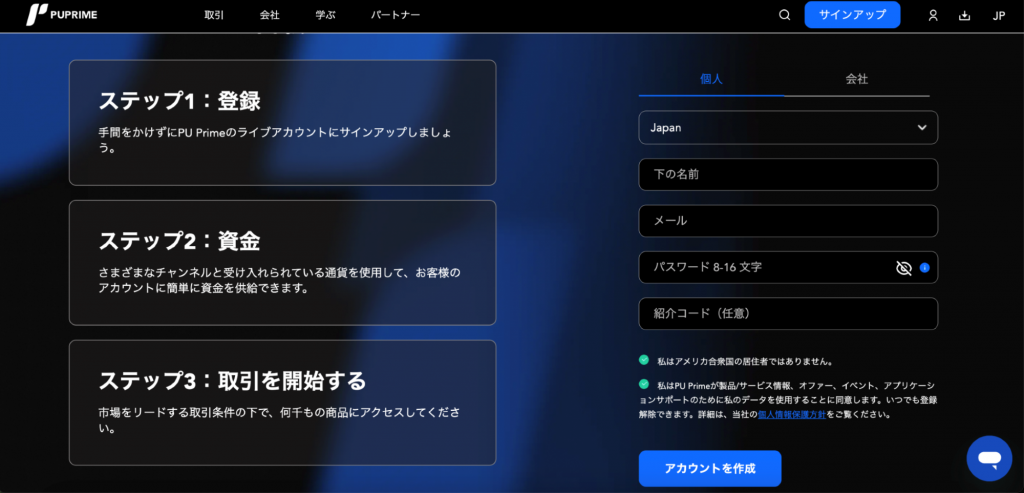 プロップトレードも実施しているので、PUPrimeは取引に慣れた人向けの業者だといえます。
