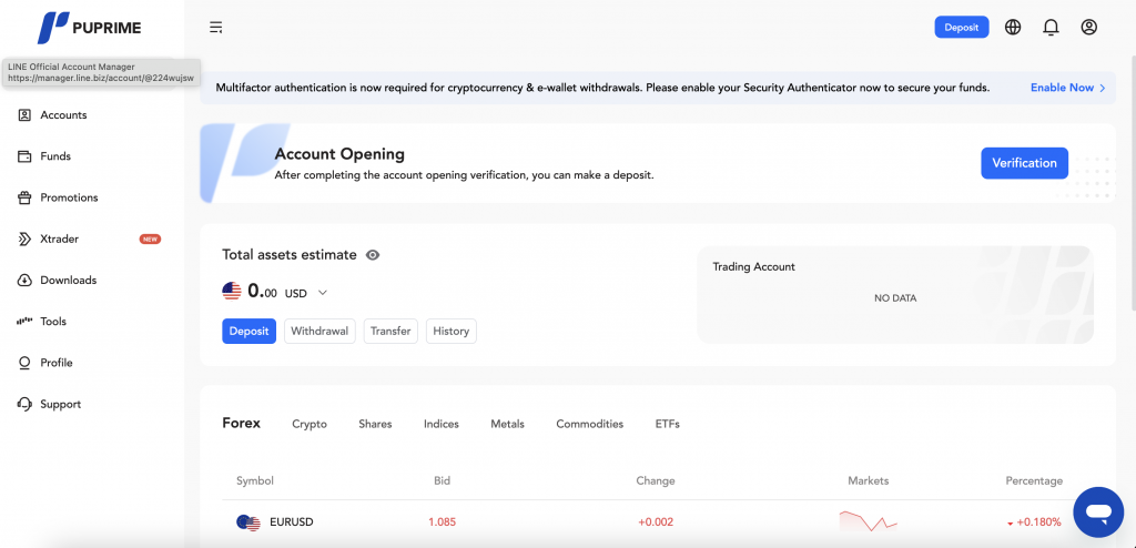 PUPrimeではデモ口座を提供しています。