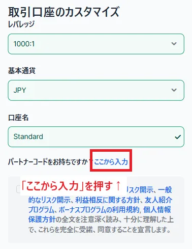 パートナーコードの入力にデメリットは一切ありませんので、口座開設時は必ず入力することをおすすめします。