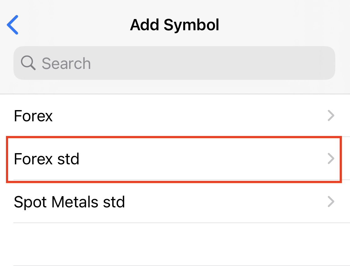 ③ Select a trading currency pair and tap to complete the symbol addition.