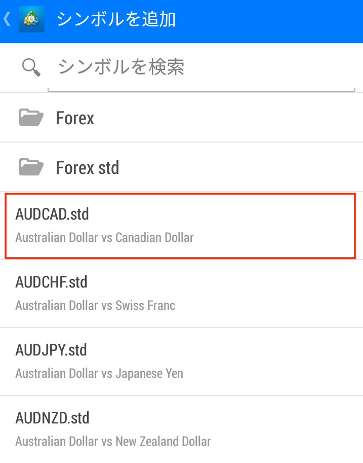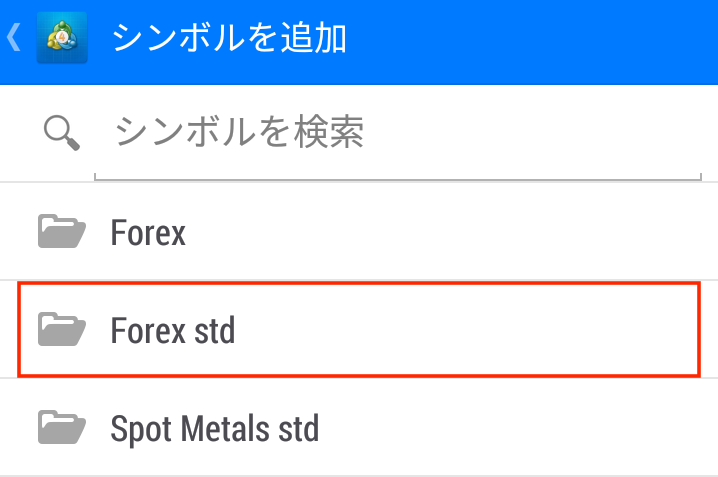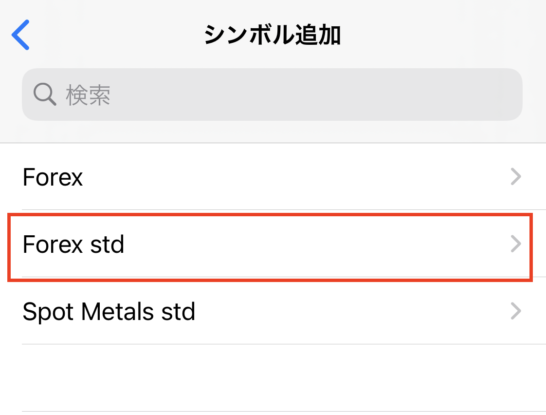 ②「シンボルの追加」が表示されたら「Forex std」をタップしてください。
