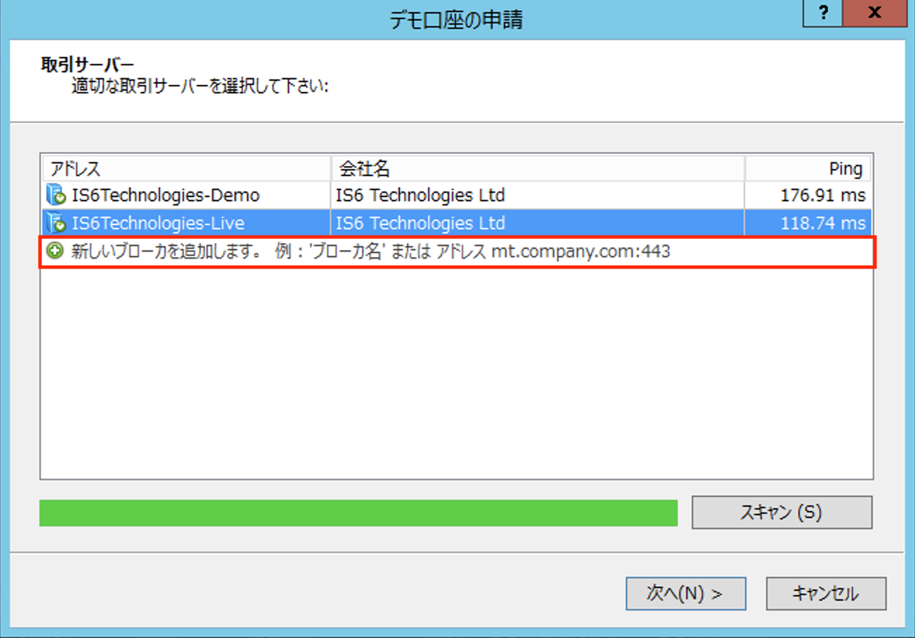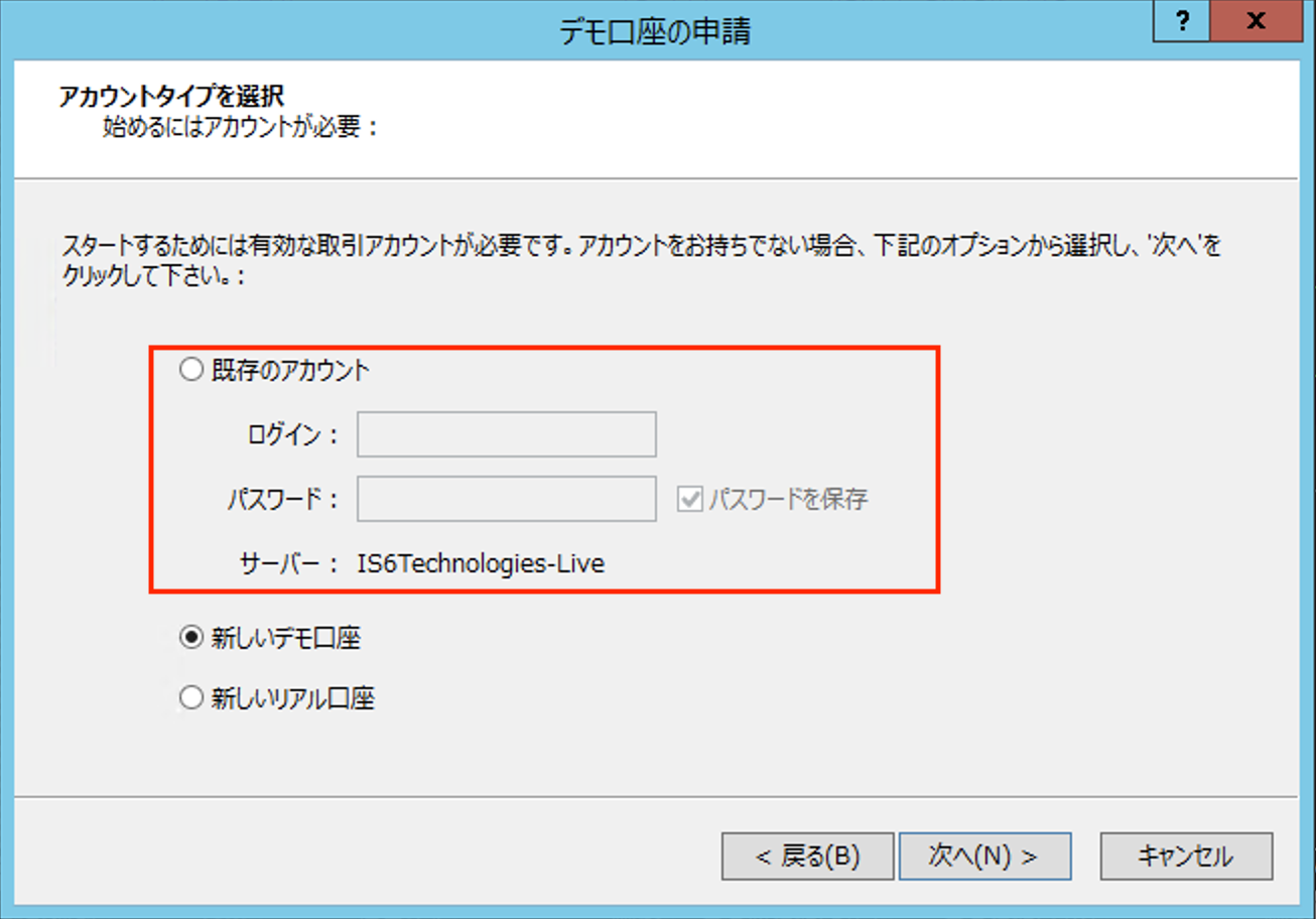 (4)更新後に、IS6Technologies-Liveを選択して、MT4IDとパスワードの入力してログインできます。